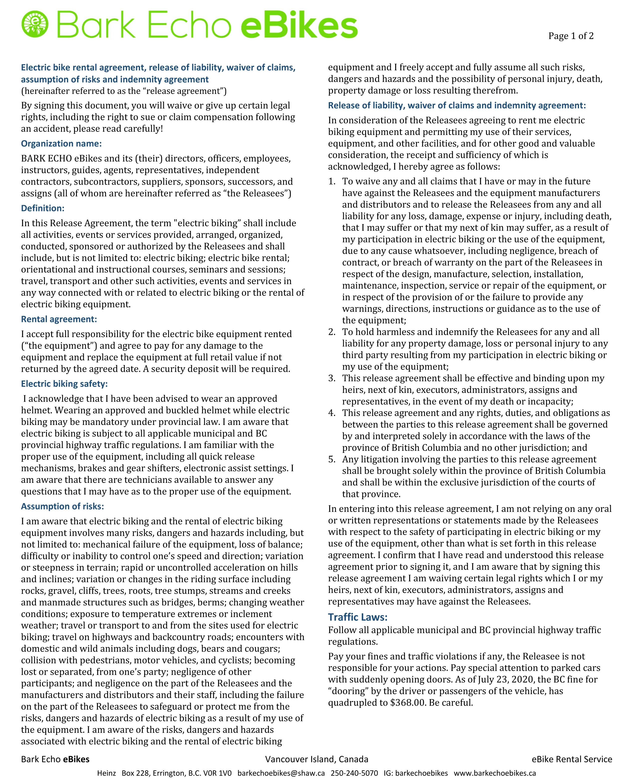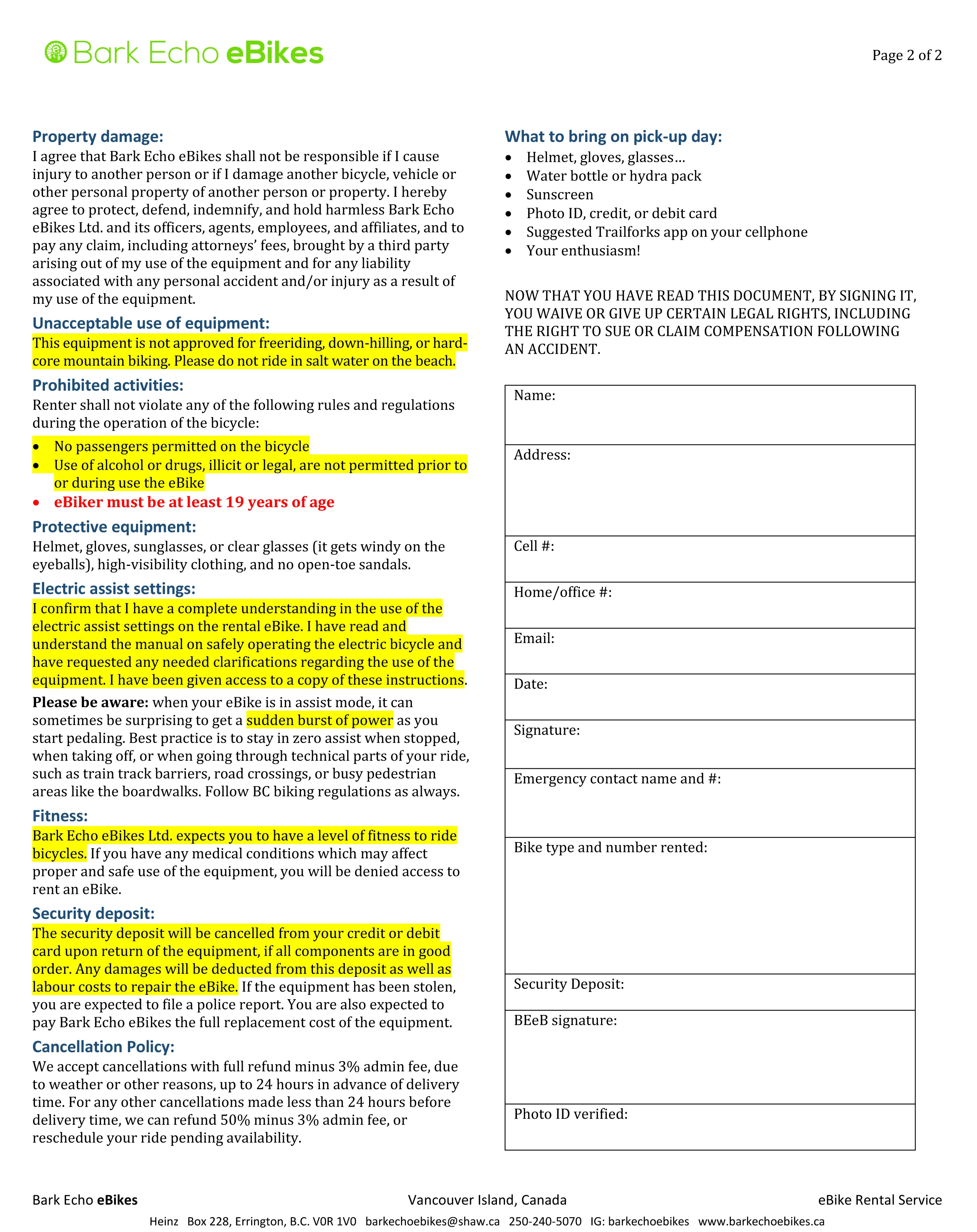 Waiver and Rental Agreement, page 2 of 2 if you right-click on the image, you can view in a new window and zoom in to read it. --
