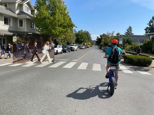 4 — Still on Fern road, keep pedalling (or not). More forest pathways once you cross Qualicum Road. At one point, the path splits left or right. Left goes into the Town of Qualicum Beach, shops, restaurants, galleries. If you veer right, then quickly left onto Veterans Way, the next right is Memorial Avenue, which winds its way down to the waterfront and the boardwalk.